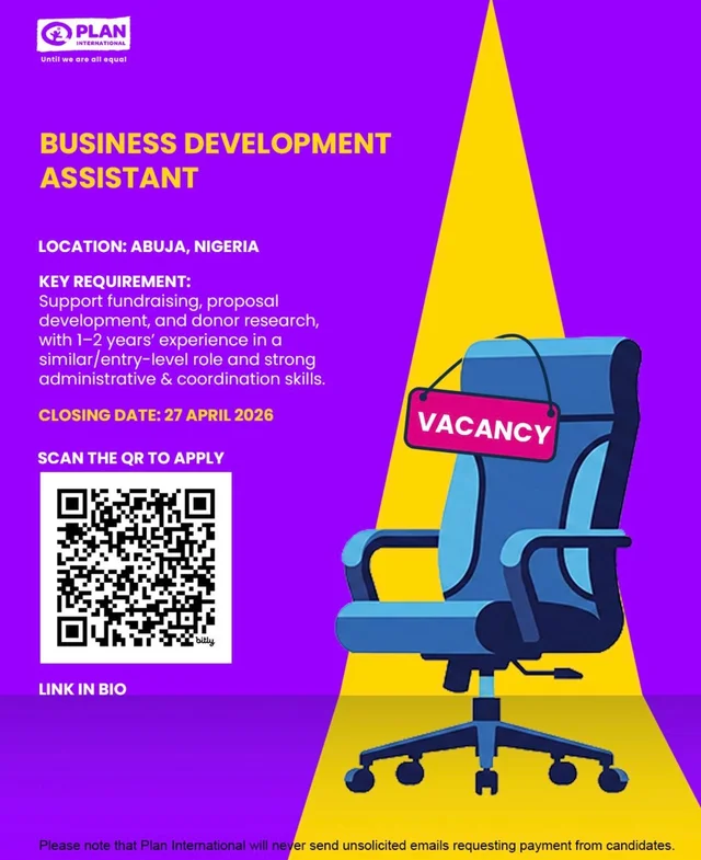 Plan International is currently recruiting a Business Development Assistant to join its team in Abuja, Nigeria.