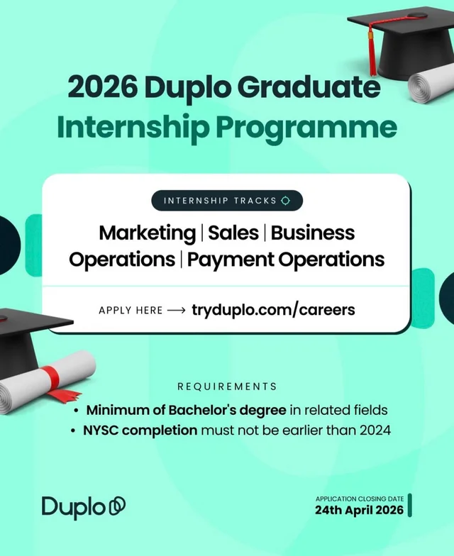 Duplo’s Graduate Internship Programme (2026) is designed to attract and develop early-career talent by giving recent graduates hands-on experience in a fast-paced fintech environment. It serves as an entry point for individuals who want to build careers in business, finance, and operations within a technology-driven company
