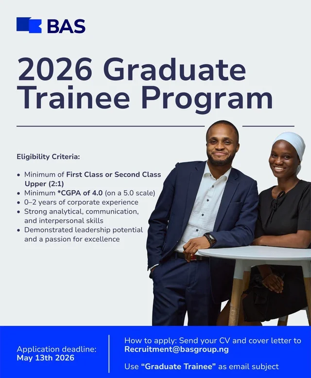 Applications are now open for the BAS Group Graduate Trainee Program 2026, a structured, high-impact pathway designed to develop exceptional young professionals across the company’s financial services ecosystem.