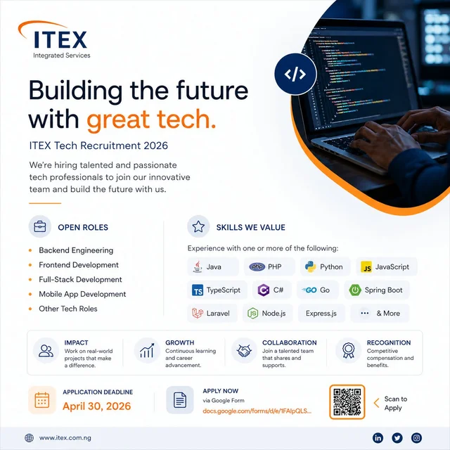 ITEX Integrated Services Limited is currently recruiting talented tech professionals across multiple engineering roles.