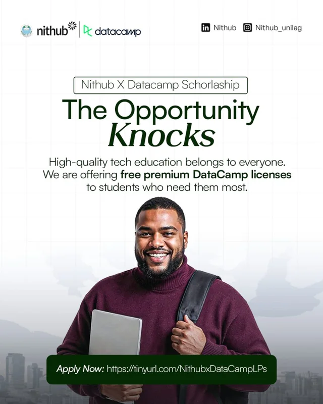 The Nithub in partnership with DataCamp is offering free premium DataCamp licenses to students who are passionate about learning tech skills but lack the financial resources.