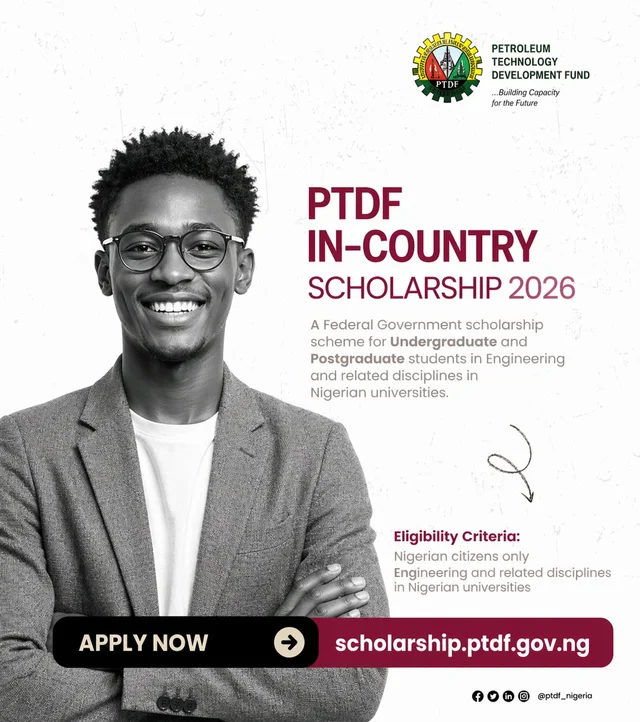 Applications are now open for the Petroleum Technology Development Fund (PTDF) In-Country Scholarship 2026, a Federal Government initiative designed to support Nigerian students studying engineering and oil & gas–related disciplines in local universities.