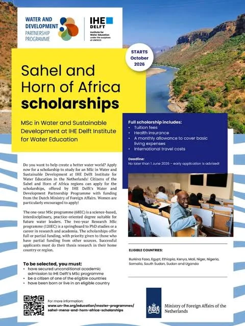 Sahel, Middle East and Horn of Africa Scholarships 2026 by IHE Delft